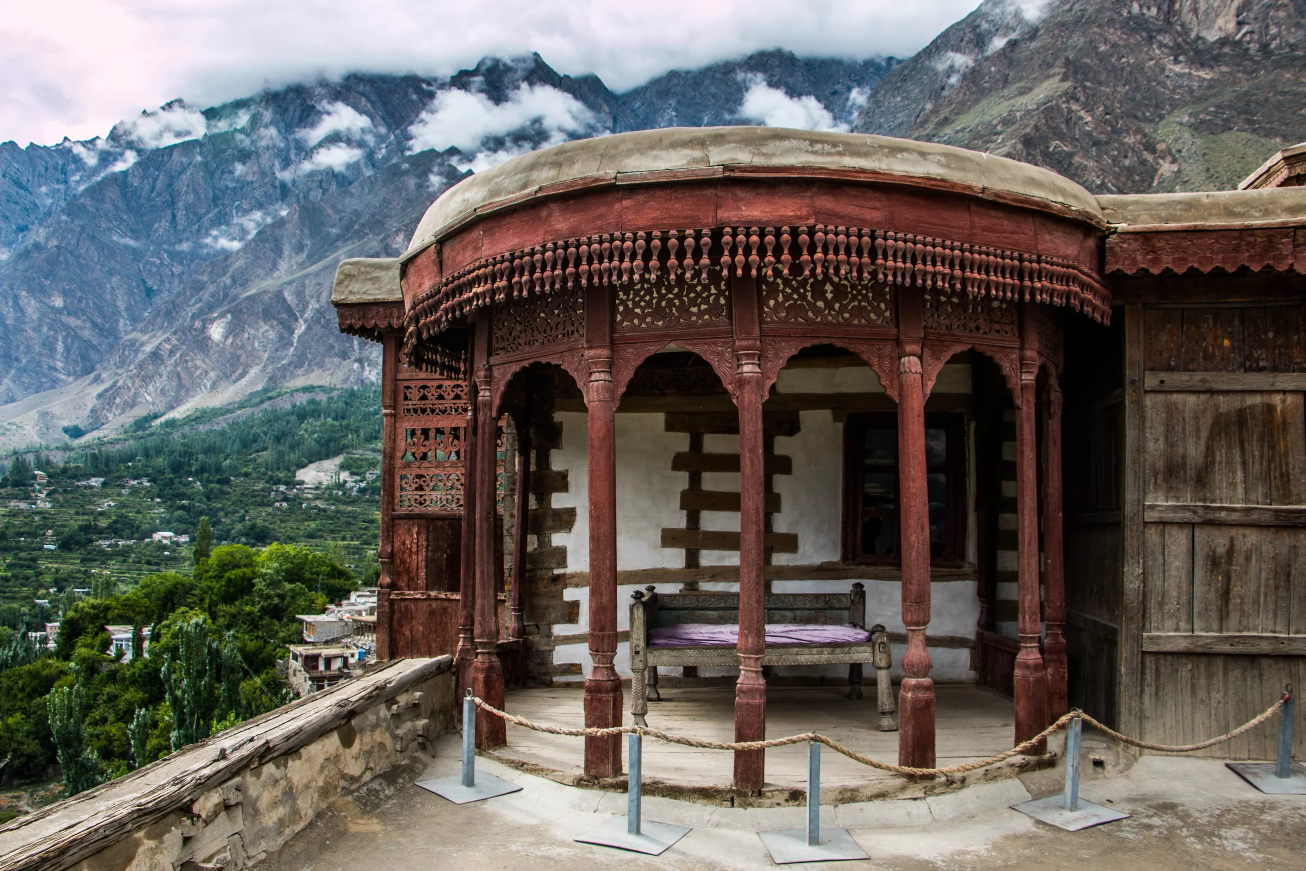 The first floor is open on all four sides, while the second floor contains a guest house and royal court, where the rulers of Hunza conducted state affairs for many years. The exact spot where the ruler used to hold court is still preserved, and visitors are not allowed to sit in that area.